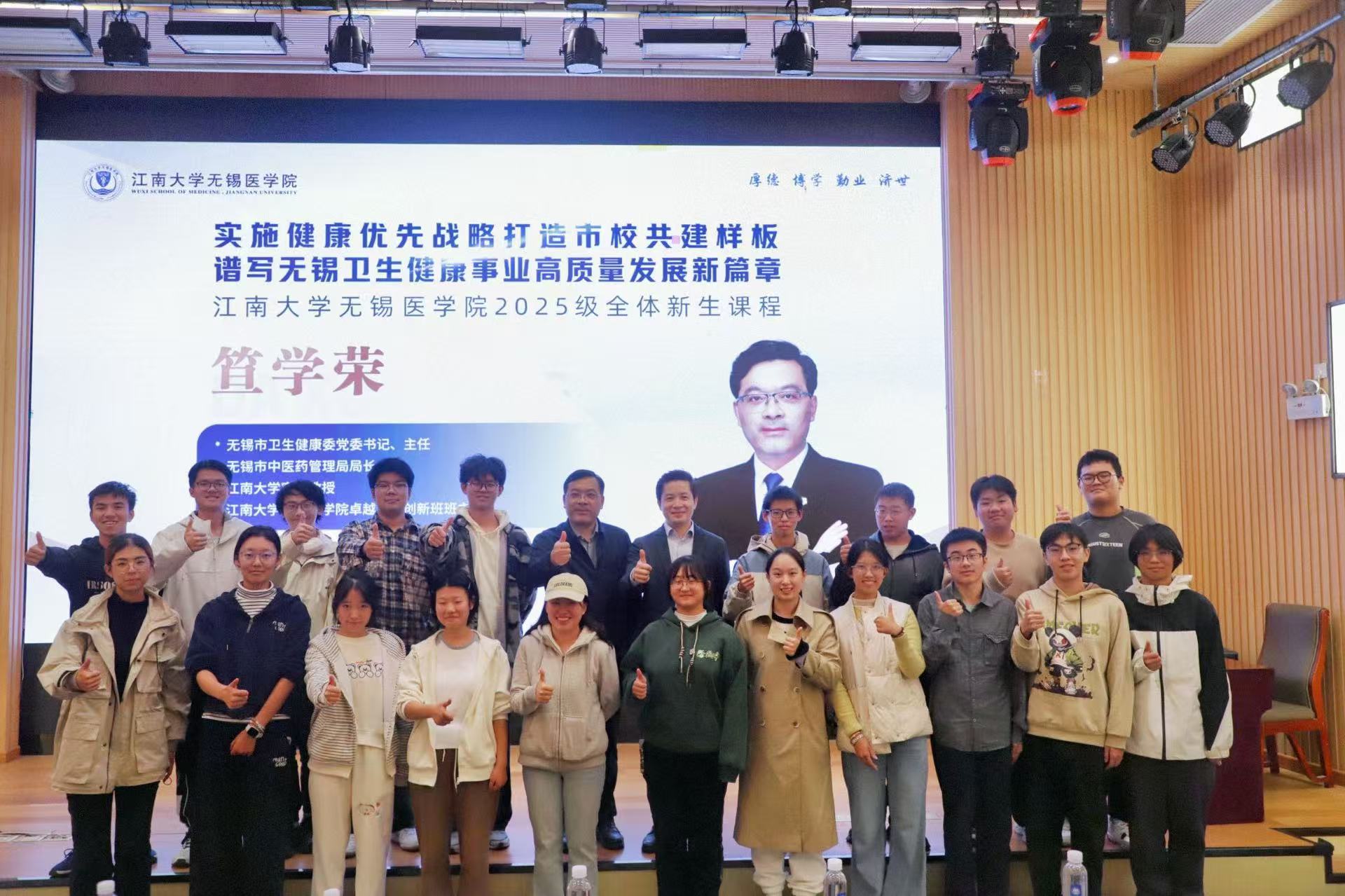 “杏林春暖”大讲堂,为2025级全体本科新生作题为“实施健康优先战略 打造市校共建样板 谱写无锡卫生健康事业高质量发展新篇章”的专题报告。国产传媒