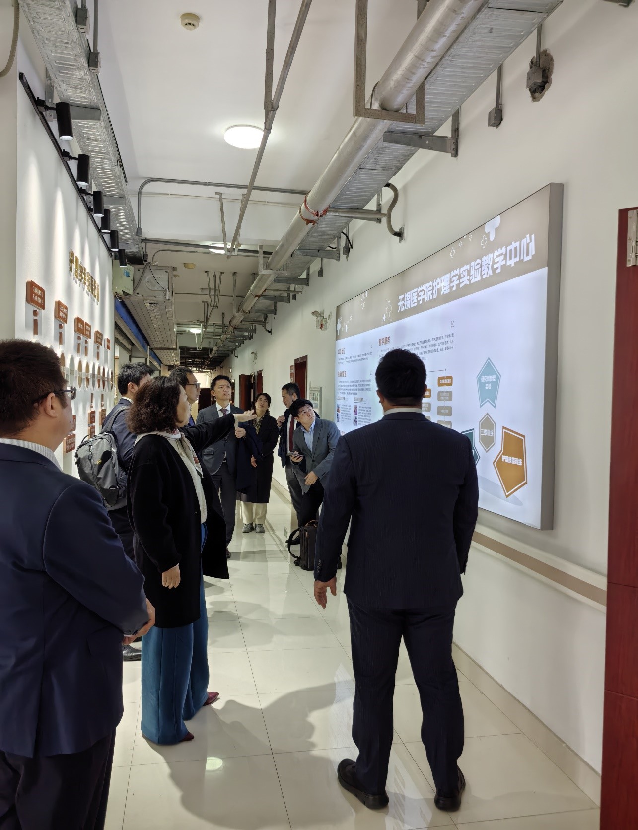 的科研平台建设与人才培养体系;蒋玉宇陪同调研了护理系科研场地、教学设施,重点介绍了护理实验教学中心的硬件设施和教学模式,以及其在提升学生临床实践能力、培养创新科研思维方面所发挥的关键作用。