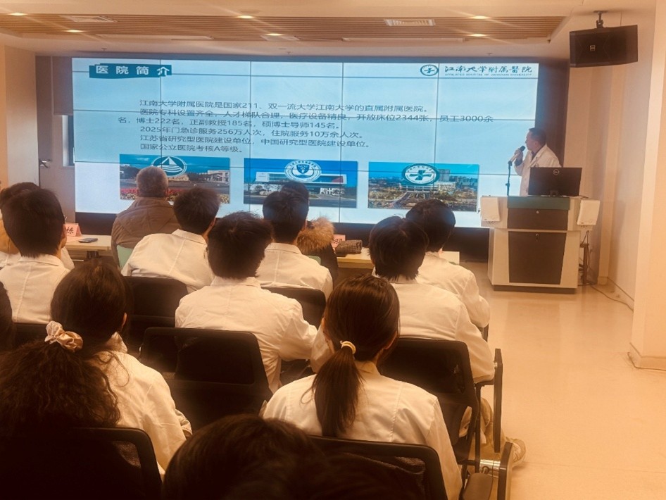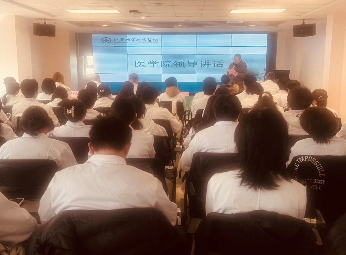 医院教育处对此次仪式给予了高度重视,精心部署。峁勇对同学们的到来表示热烈欢迎,附属医院是同学们将理论知识与临床实践深度融合的“练兵场”,是感悟医者仁心、锤炼临床思维的“大熔炉”,更是从医学生向准医生角色转变的关键起点;希望同学们能尽快融入国产传媒